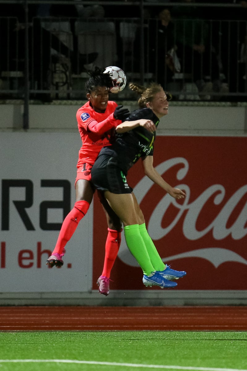Frábær varnarvinna hjá Heiðdísi sem nær að stoppa hina eldfljótu Katoto áður en hún kemst á ferðina.