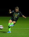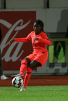 Reynsluboltinn Formiga reynir langskot. Bjartsýn og boltinn vel framhjá.