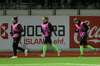 Blikar eru í glæsileg svörtu og grænu evrópubúningunum sínum en gestirnir eru í neon bleiku.
