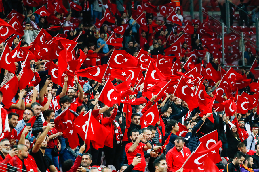Undir lok leiksins fékk starfsmaður á bekk Tyrklands að líta rauða spjaldið.
