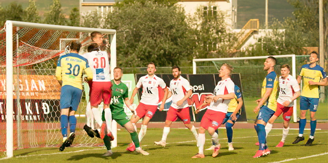 Þórsarar lentu í kröppum dansi í Mjólkurbikarnum þegar þeir heimsóttu Völsung á Húsavík og þurfti vítaspyrnukeppni til að skera úr um hvort liðið færi áfram, eftir dramatískt 2-2 jafntefli. Þar reyndust Akureyringar öflugri og Þór fær Reyni Sandgerði í heimsókn í næstu umferð. Sigurður Marinó Kristjánsson og Bjarki Þór Viðarsson skoruðu mörk Þórs í leiknum.