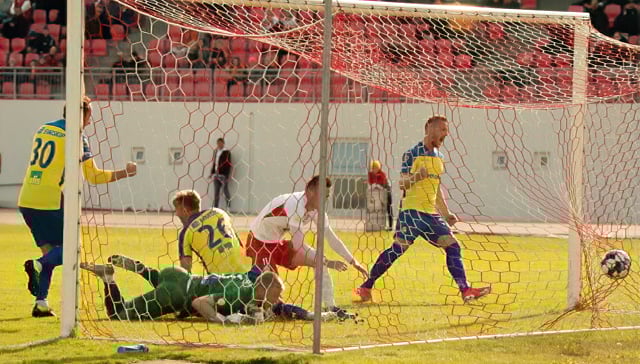 Alvaro kemst í gott færi og setur boltann yfir! Heimamenn vilja vítaspyrnu, þar sem að það virtist vera togað í hann en Sigurður dæmir einfaldlega markspyrnu. Áfram gakk!