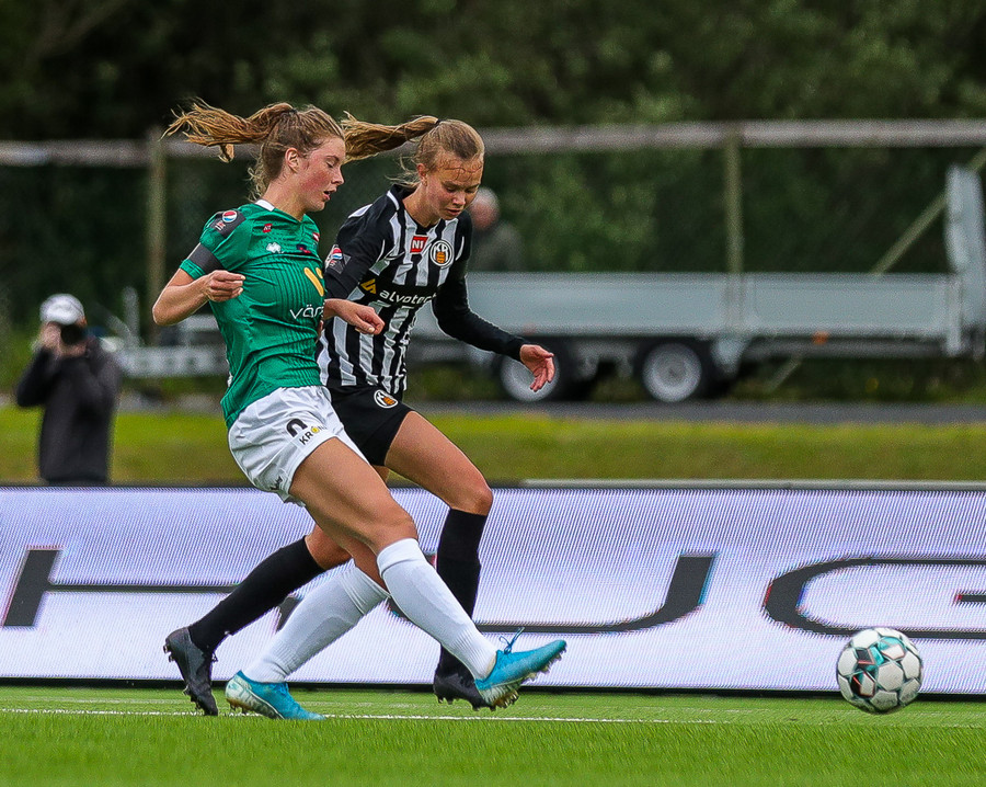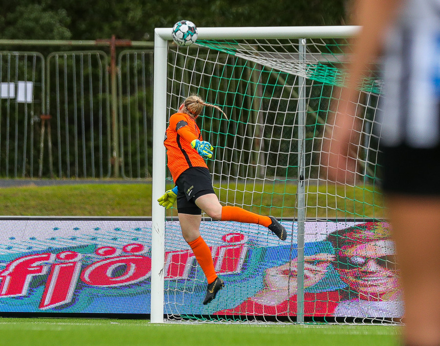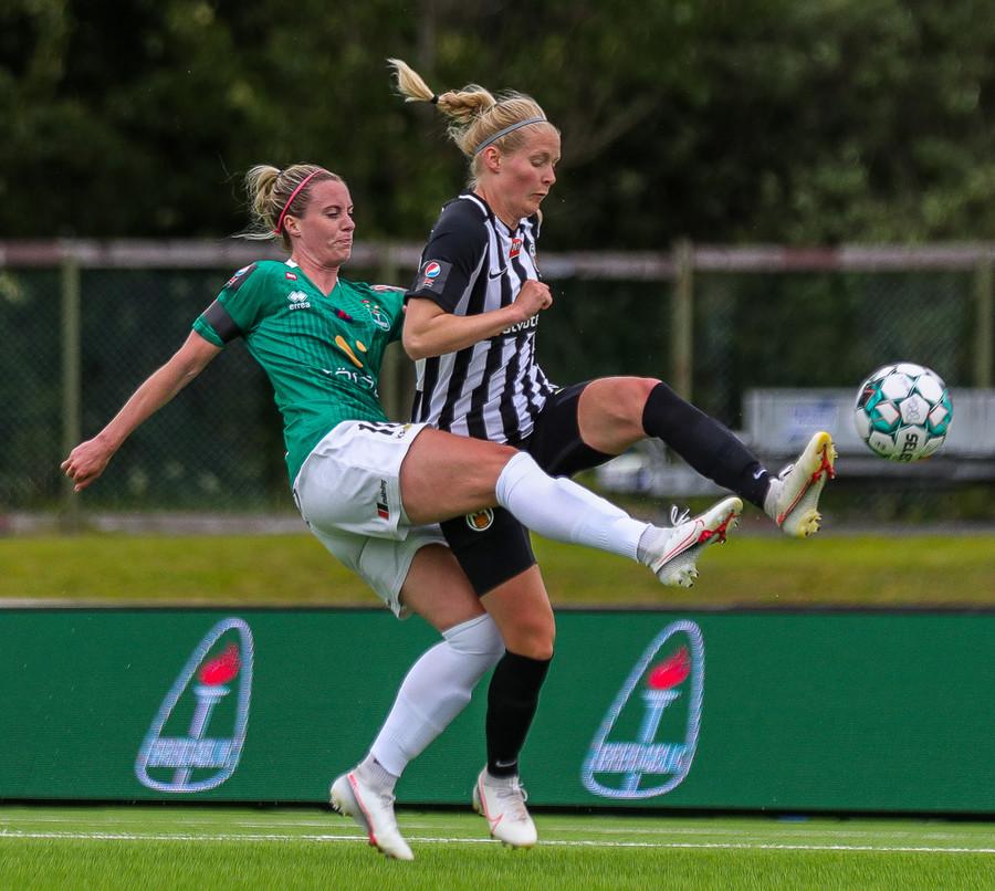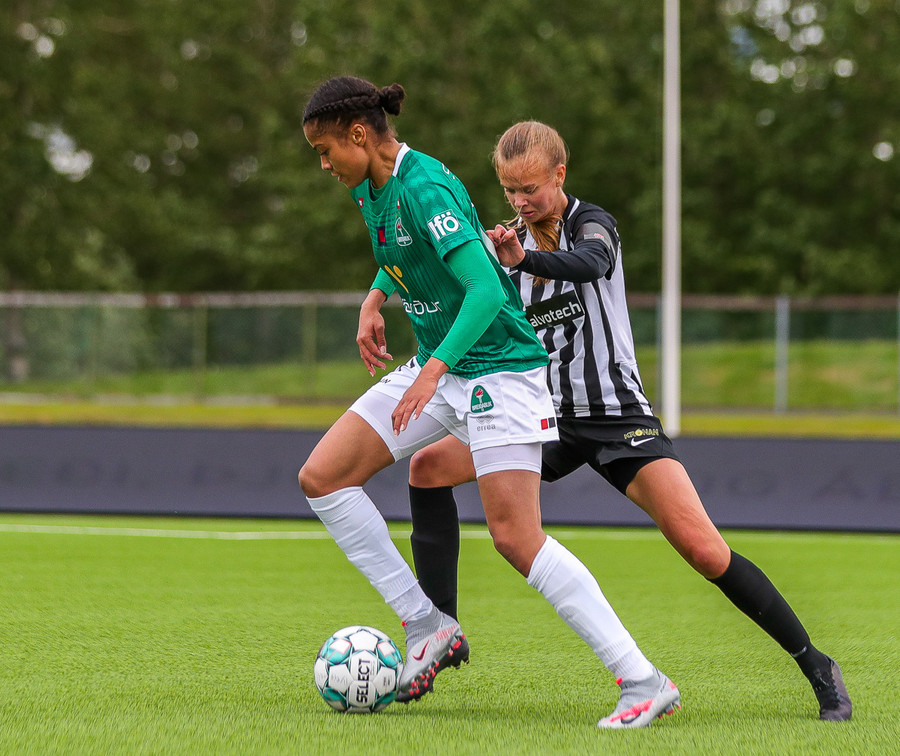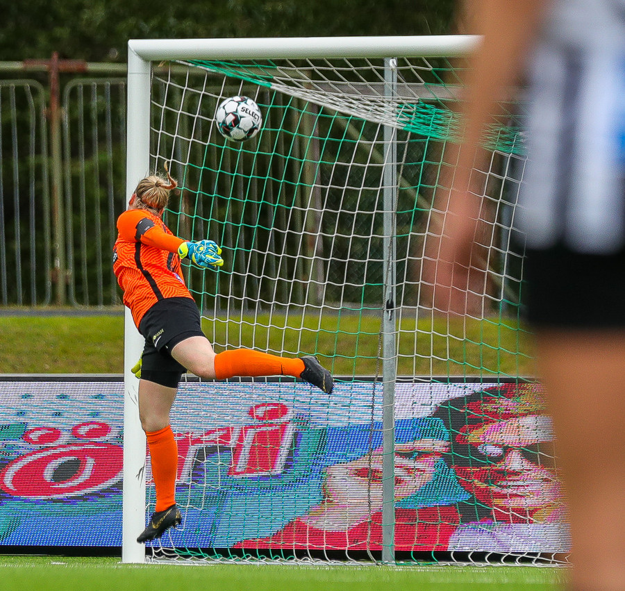 Aftur ver Ingibjörg vel. Sveindís var komin í fínan séns í teignum en Ingibjörg með góð viðbrögð og kemur í veg fyrir sjötta markið.