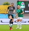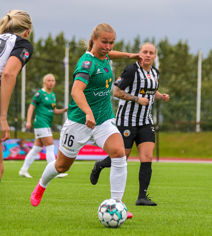 Aftur dansar Agla María með boltann. Köttar inn frá vinstri og reynir skot en setur boltann aðeins yfir.