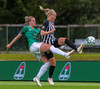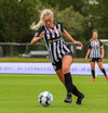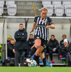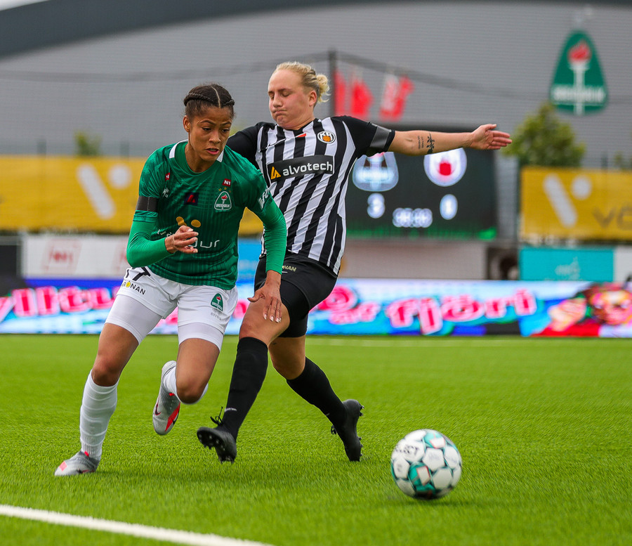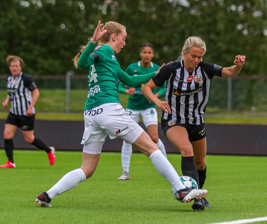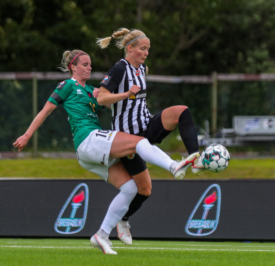 Fær sendingu frá Sveindísi, nær að leggja boltann fyrir sig í D-boganum og á skot sem fer af Laufeyju og inn!