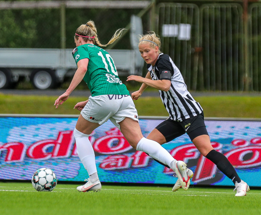 Það er sýning á Kópavogsvelli. Agla María var að bruna skáhalt yfir allan völlinn frá vinstri og inná teig hægra megin. Lagði boltann svo út á Rakel sem skaut yfir!