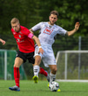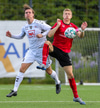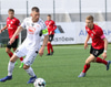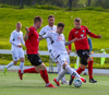 Telmo Castanheira reynir að finna Gary í góðu hlaupi en Jon vel á verði og kemst á undan Gary í boltan