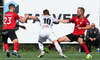 Alejandro keyrir upp hægri kantinn og á fyrirgjöf en engin rauðtreyja mætir til að skalla boltan og boltin afturfyrir