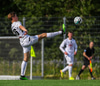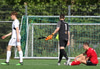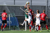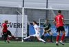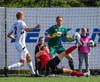 Guðjón Ernir fær boltan hægra meginn og kemur með fastan bolta fyrir en Jon Tena gerir vel og grípur boltan