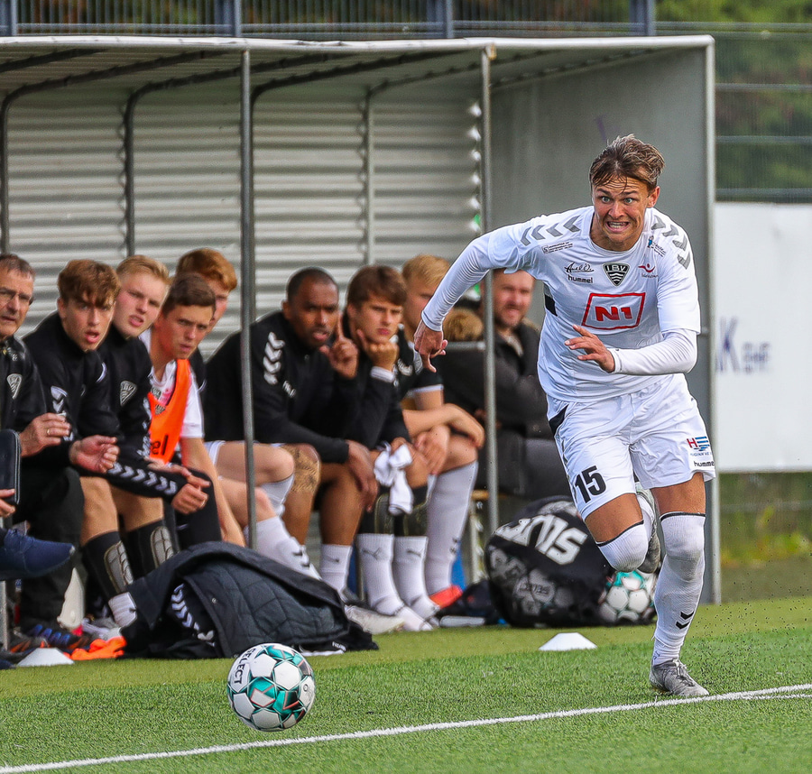 Hafliði og Jason Daði leika skemmtilega á milli sín og það endar með að Hafliði finnur Jason Daða sem kemst einn í gegn en skot hans yfir markið.