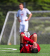 Ísak virðist brjóta á Víði en ekkert dæmt og við það trompast Víðir