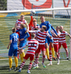 HK með háan bolta fyrir markið ætlað Stefán Ljubicic en Hákon Rafn er alveg með þetta.