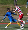 Sigurvin Reynisson tekur á sprettinn og sólar sig í gegn alveg upp að Didda sem ver svo frá honum!