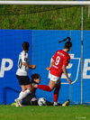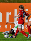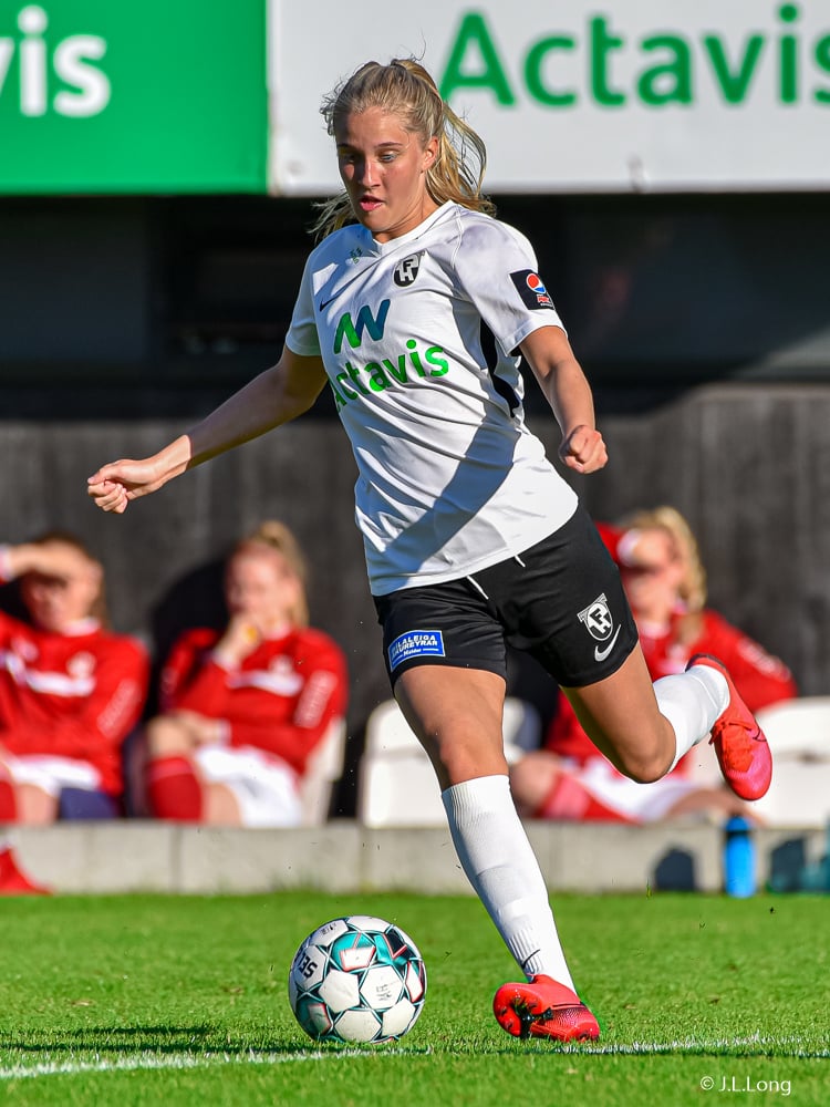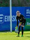 Þá er komið að Rannveigu að munda skotfótinn. Hún lætur vaða af löngu færi en skotið auðvelt fyrir Friðriku.