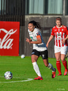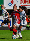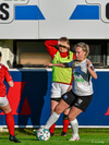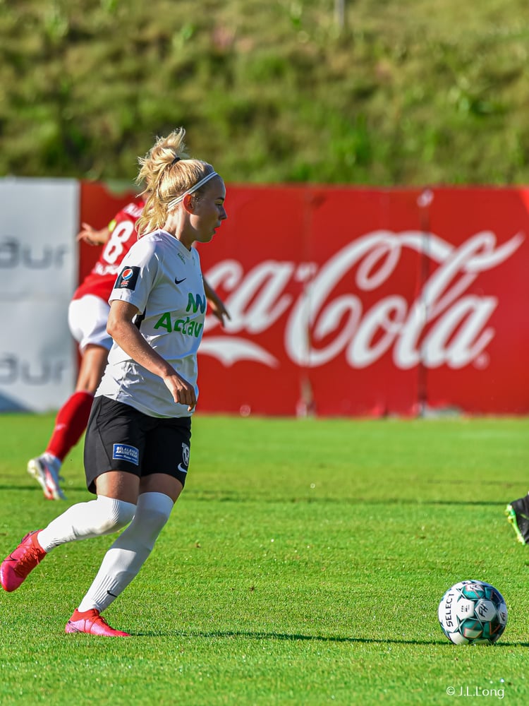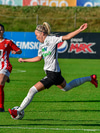 Stephanie ræðst á vörnina eftir innkast, kemst inn á teig vinstra megin og klárar í fjærhornið.