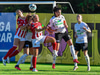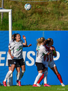 Mary Alice á flottan bolta inn á teig þar sem Stephanie er mætt og nær skalla að marki. Boltinn hinsvegar beint í lúkurnar á vel staðsettri Telmu.