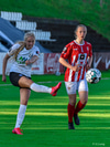 Andrea Rut tekur stutt á Lauru sem sýnir skemmtilega takta, sólar varnarmann en missir boltann svo frá sér áður en hún nær fyrirgjöf.
