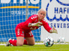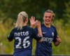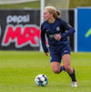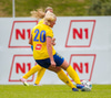 Natasha nær sendingu sem poppaði í teignum og nær að koma þessu á markið og boltinn rúllar framhjá fjærstönginni!