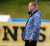 Keflavíkurliðið er farið inn í búningsklefa en Fjölnir ákveður að klára að hita sig upp í smá skothríð aðeins lengur við ljúfa tóna Aron Can