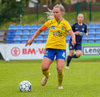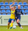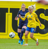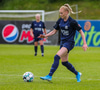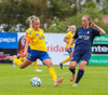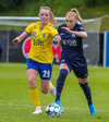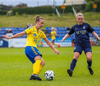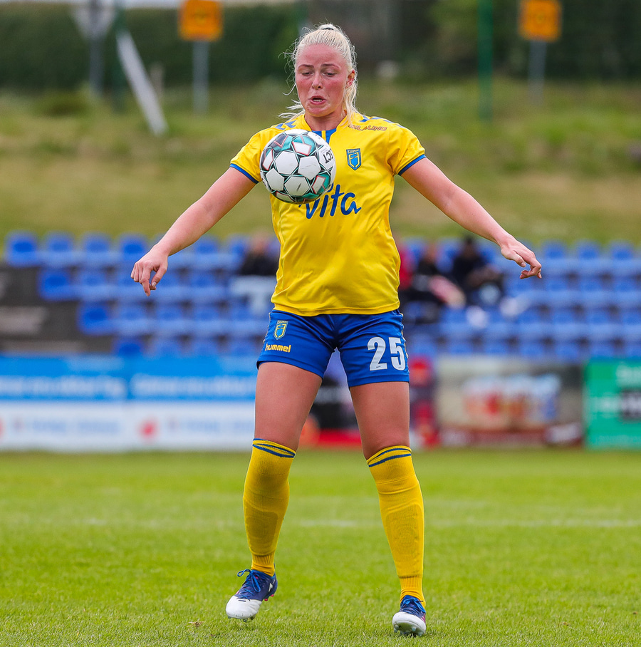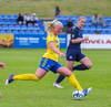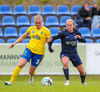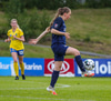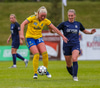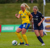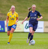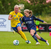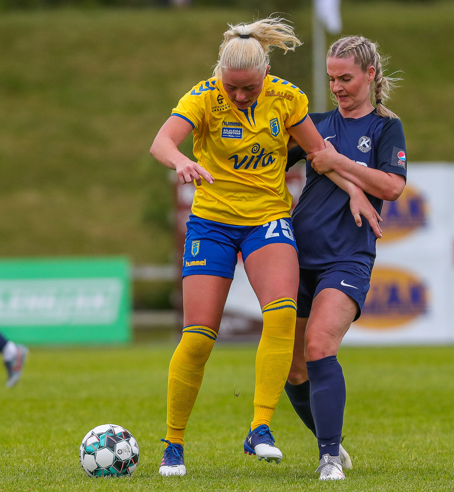 Dröfn reynir að leika á Hlín úti á hægri kantinum en Hlín gerir vel og skýlir þessu út af og markspyrna