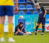 Sara sleppur inn fyrir og Kristrún rennur sér í hana og virðist brjóta á Söru!