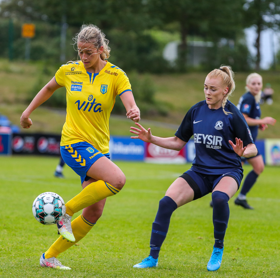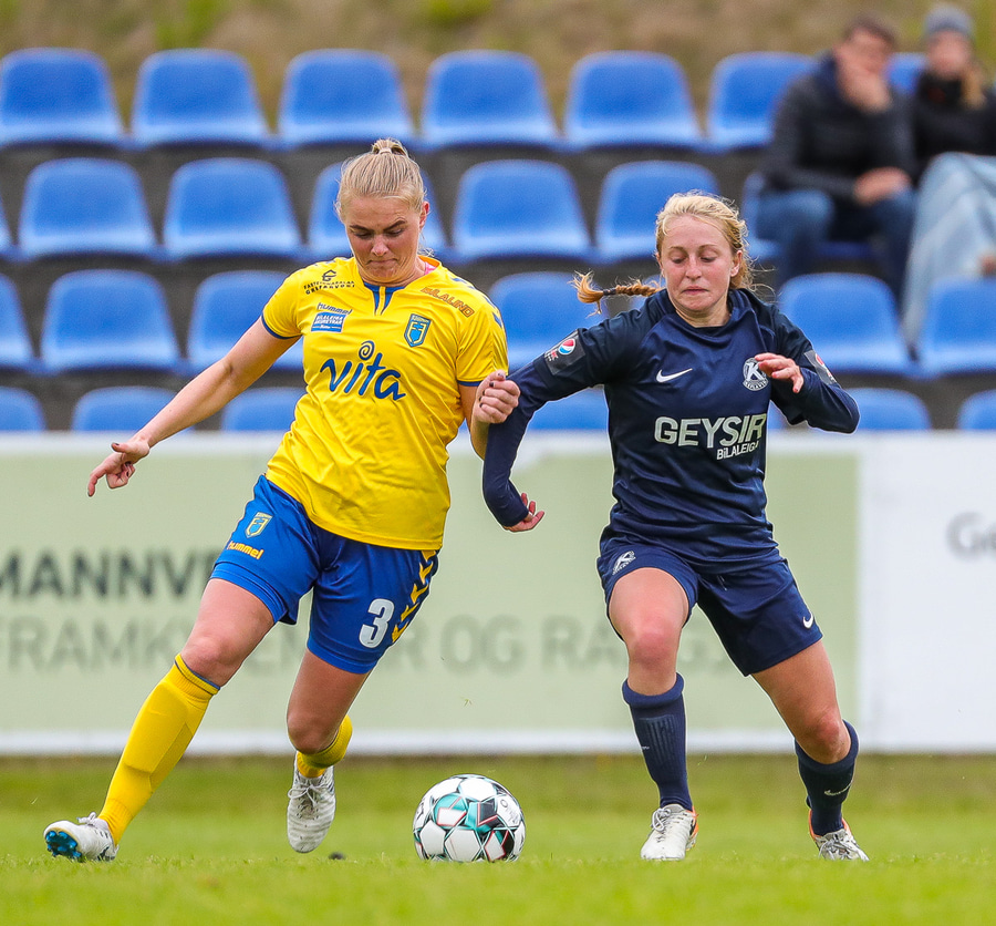 Geggjuð sending inn fyrir vinstra megin hjá Sigríði. Þórey í kapphlaupi en fyrsta snertingin svíkur hana og boltinn aftur fyrir endamörk
