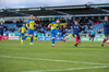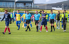 Fjölnir spilar í sínum hefðbundu gulu búningum á meðan Grótta spilar í sínum hvítu varabúningum.