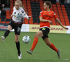 Hafrún Rakel köttar inn á völlinn og skýtur með vinstri en það er beint á markið.