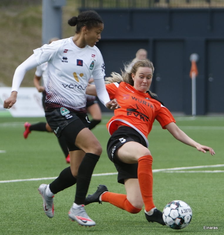 Frábær fyrirgjöf frá Hildi Þóru beint á kollinn á Rakel sem sneiðir boltann rétt fram hjá.