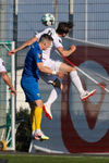 Truflar Hákon í útsparki. Víkingar vildu fá hendi eftir hornið en var lítið í því.