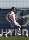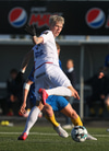 Ég velti því fyrir mér hvort Sölvi Geir sé eitthvað tæpari en venjulega. Hann virðist nánast eingöngu sparka með vinstri, réttfættur maðurinn.
