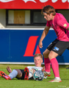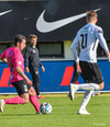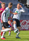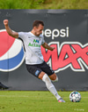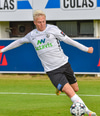 Fær boltann inn á teig eftir fyrirgjöf og nær valdi á boltanum en nær ekki að koma boltanum á markið.
