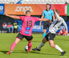 Jónas Björgvin reynir að þræða boltann inn á Alvaro en boltinn aðeins of fastur og boltinn ratar í hendurnar á Daða Frey markmann FH.
