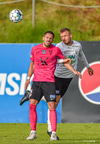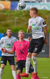 Sveinn Elías fær boltann úti á hægri væng og kemur með góða fyrirgjöf ætlaða Izaro en Hörður Ingi bjargar í horn.