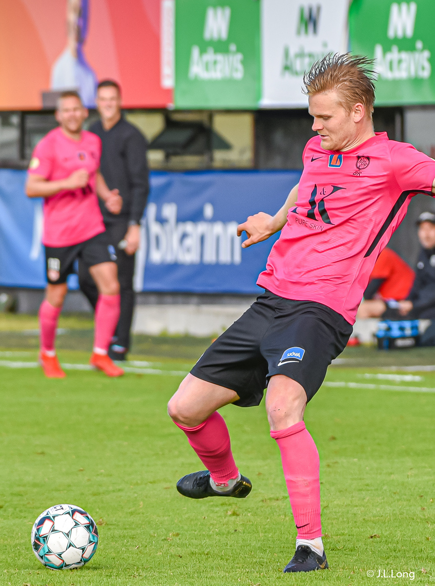 Fær boltann úti vinstra meginn og fer ílla með Hörð Inga og reynir fyrirgjöf en boltinn af Herði og í hornspyrnu.