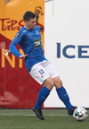 Guðjón Pétur með sturlapað bolta á fjær og þar er Sölvi og á skot í markteignum en beint í Hákon Rafn!