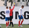 Óskar Jóns fer í eina groddarlega af gamla skólanum, réttilega gult spjald...