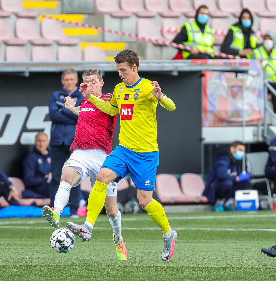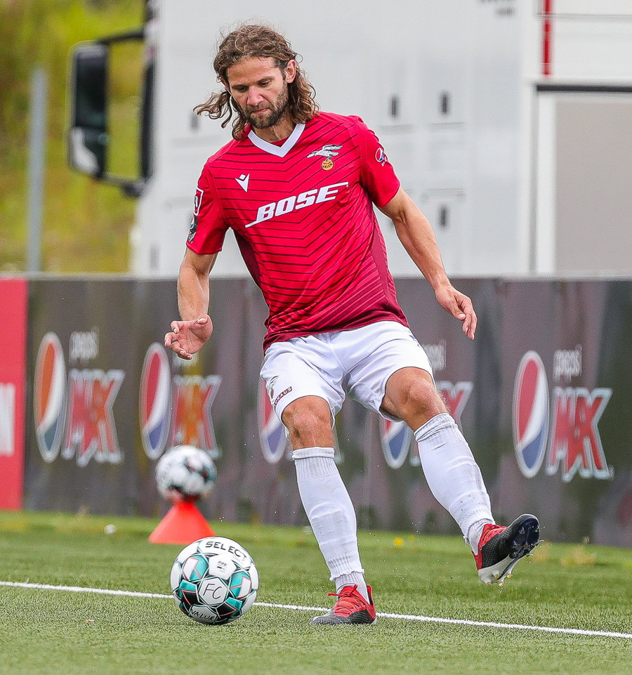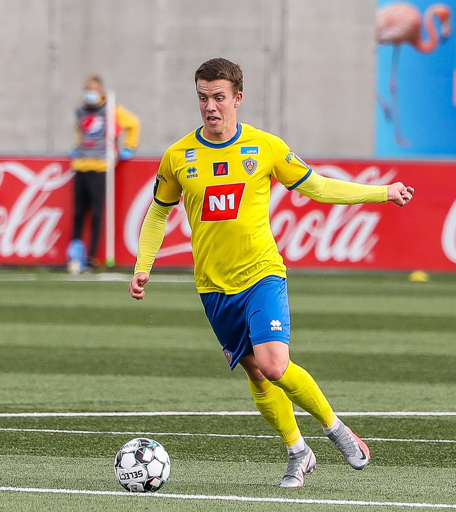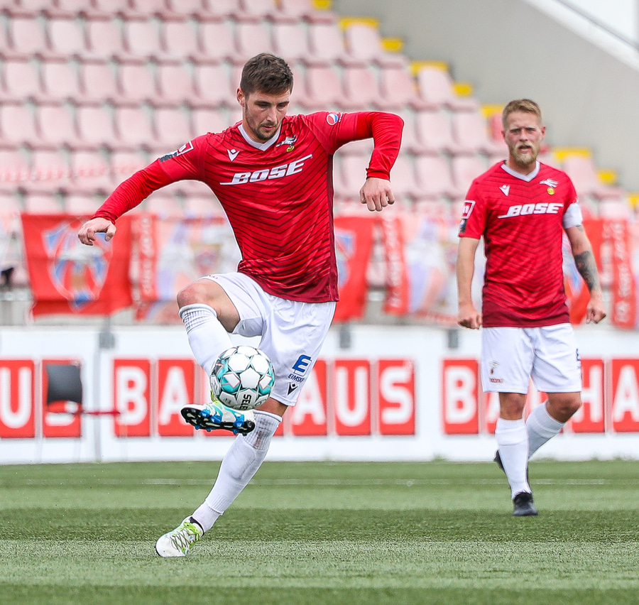 Aron enn að gera gestunum lífið leitt, kemst framhjá Ívari og neglir inní en Mateo kemur boltanum frá á síðustu stundu.