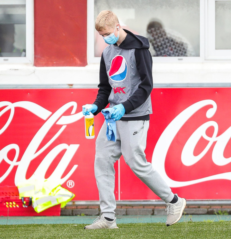 Lineup með tveggja metra millibili og klappað til okkar blaðamannanna.