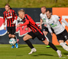 Kwame á fyrstu marktilraun leiksins. Ágúst Eðvald fær hann inn á miðjum vallahelming FH og rennir honum til hliðar á Kwame sem reynir skot en boltinn yfir markið.