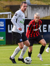 Dofri Snorra fær boltann inn á teig og reynir að fara framhjá Gumma Kri en Gummi með frábæran varnarleik og skilar boltanum afturfyrir.