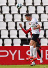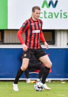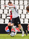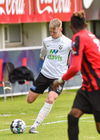 Fær boltann til baka og hittir boltann alls ekki vel og sendir boltann í hornspyrnu.