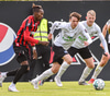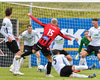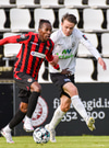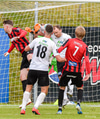 Kwamer fær hann og kemur með fyrirgjöf en Nielsen grípur boltann.