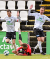 Eggert leggur hann til hliðar á Þóri sem hafði allan tíman í heiminum til að koma skoti á markið en tapar boltanum.
