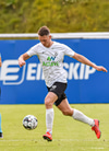 Halldór Jón fær boltann hægramegin og reynir fyrirgjöf en boltinn af Hjört og afturfyrir.