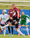 Boltinn berst út á Hörð Inga sem kemur með fyrirgjöf alveg á fjær og þar mætir Hjörtur og klippir hann viðstöðulaust í nærhornið.