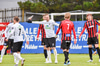 Óttar Magnús lyftir boltanum fyrir og Ágúst Eðvald leggur hann tilhliðar á Kristal sem á skot en Nielsen ver.