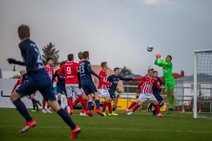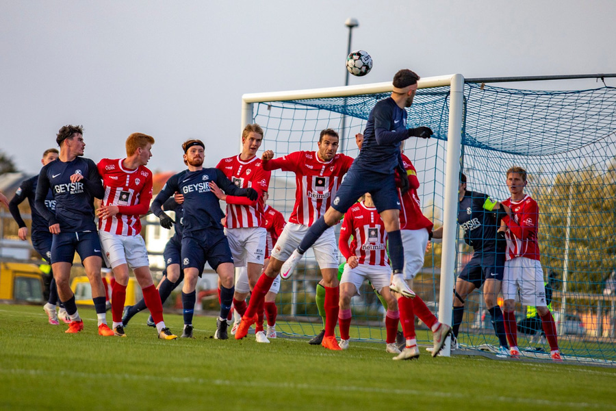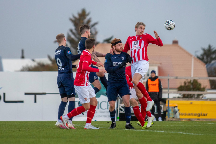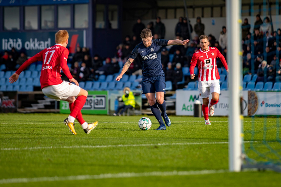 Rúnar Þór með flottan sprett upp vinstra megin og fyrirgjöf inn á teiginn þar sem Adam Árni reynir að klippa boltann í netið en setur hann í jörðina og upp. Boltinn dettur svo ofan á slánna og afturfyrir.