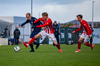 Davíð sendir Kian í gegn en fyrsta snertingin svíkur og Franko nær til boltans á undan honum.