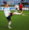 Þorsteinn Daníel fær boltann hægra meginn og kemur með boltann fyrir en hann yfir allt og yfir á Arnar Loga sem kemur með boltann aftur fyrir á Þorstein sem var mættur á fjær en Þorsteinn rétt missir af boltanum.